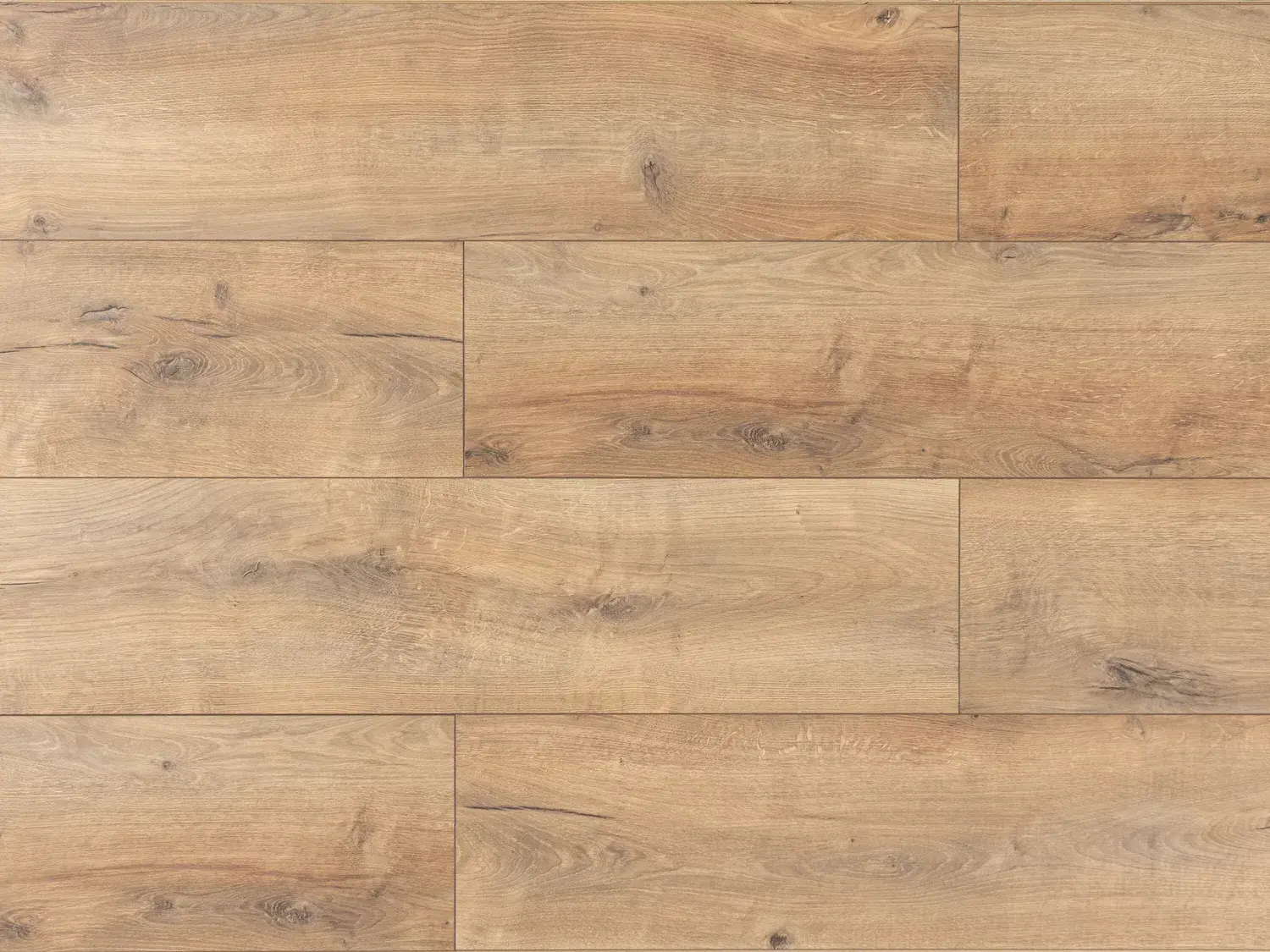 Синхронный рельеф совпадает с рисунком декора — поверхность неотличима от натурального паркета